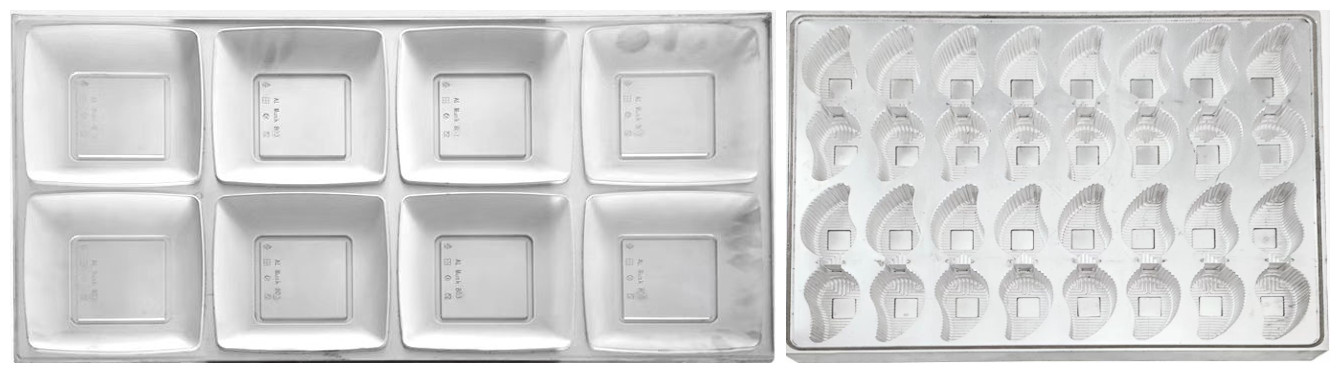 配套各類PP、PET、PE、HIPS、EPS、PVC、PLA、BOPS降解材料的正壓熱成型模具以及三工位模具。(部分模具展示)